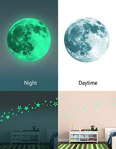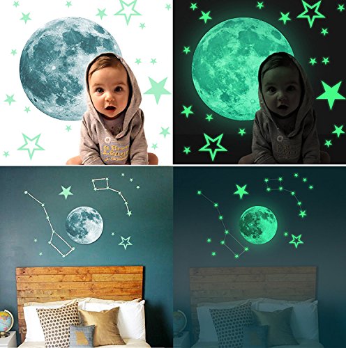 Marsway Removable 30cm Moon Stars Glow in the Dark Sticker Night Luminous Kids Room Wall Decal Stickers