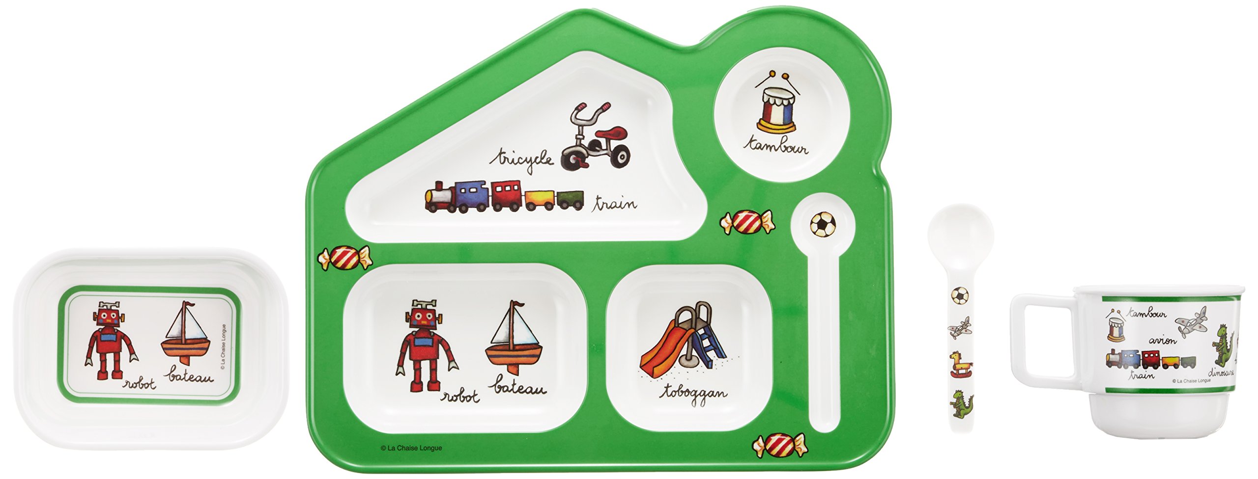 A cute original design dish set with cute illustration of funny toys is best for baby celebration etc. It is hard to break even if it is made of melamine.