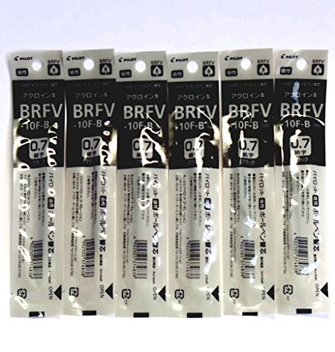 Pilot Acroball Ballpoint Pen Black Ink Refills, 0.7mm, BRFV-10F-B, Set of 6 (Japan import) [Komainu-Dou Original Package]