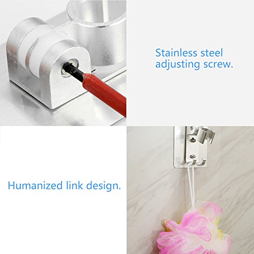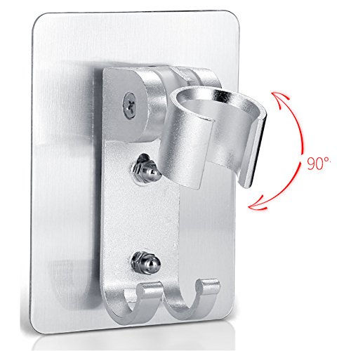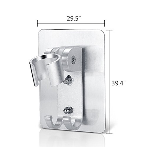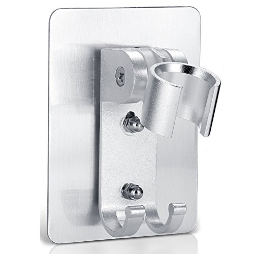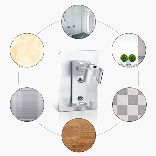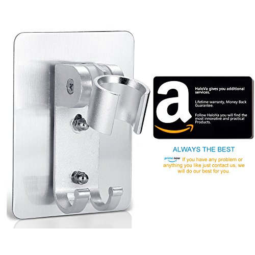 HaloVa Shower Head Holder, No Punching Adhesive Adjustable Handheld Showerhead Bracket with 2 Hooks, Universal Bathroom Wall Mount Bracket Holder
