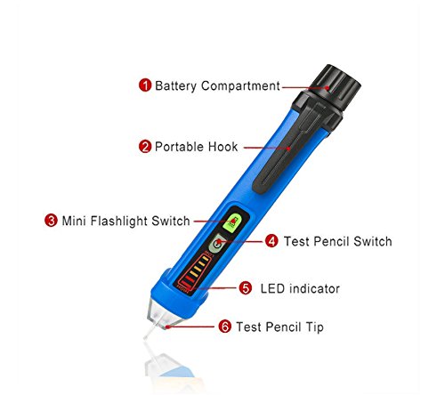 Using the ABS and PVC material,ac volt detector can stand wear and tear, and its pocket clip allows easy handling. Auto power-off feature conserves energy while the LED torch allows operation even on dark corners.