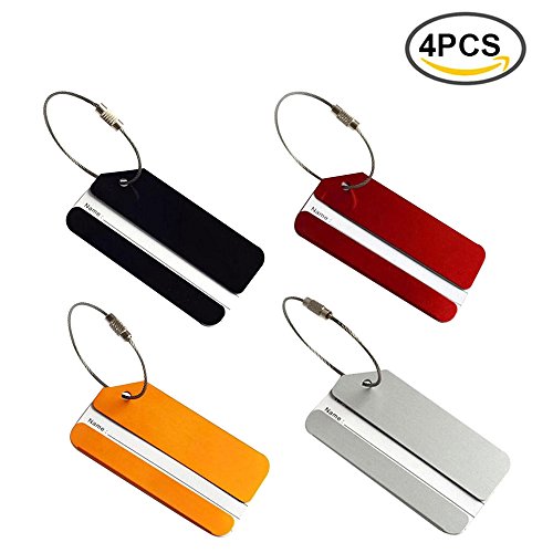 KINGLAKE 4Pcs Luggage Tags,Travel Luggage Tag,Cute Luggage Label,Travel Suitcase Luggage Bag Tags,Aluminum Alloy Tags,Airline Baggage Labels,Travel ID Tag with Stainless Steel String Wire
