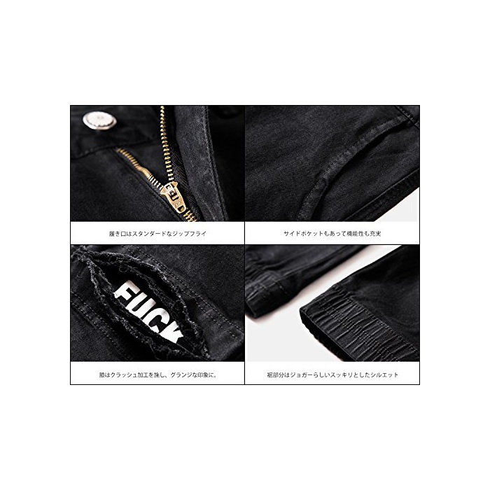원본상품명: ビヨンドユ デニムパンツ メンズ ダメジ リペア カットオフ カットデニム タイト ジンズ byd233w16-BLK-XL