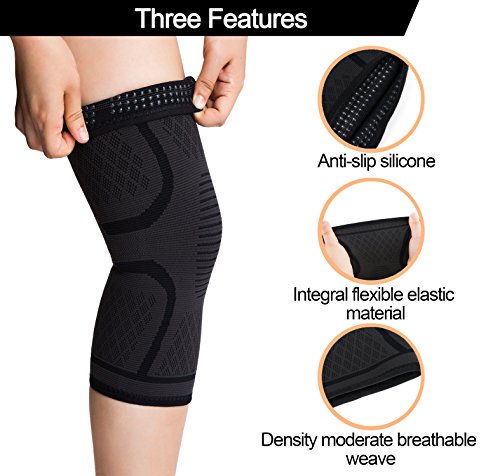RELIEF KNEE PAIN & PROTECT YOUR JOINT--Do you still feel uncomfortable on your knee? Are you tired of the knee soreness after excise? Try this compression knee sleeve.It will not only reduces inflammation and swelling but also alleviates soreness and stiffness. And NO-SLIPPING SILICONE will keep them in place so that it will protect your joint all day.