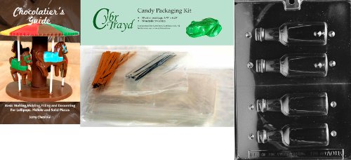 Cybrtrayd Medium Bottles All Occasions Chocolate Candy Mold with Chocolatier's Bundle, Includes 50 Cello Bags, 50 Twist Ties and Chocolatier's Guide