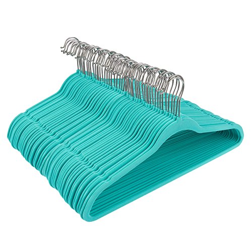 -. Title : Velvet Hangers with Accessory Bar - For Shirts, Dresses, and Delicate Clothing - Non-Slip Velvety Smooth Texture - Slim Space Saving Design- Teal - 50 Pack - 17.5 x 0.2 x 9.5 Inches