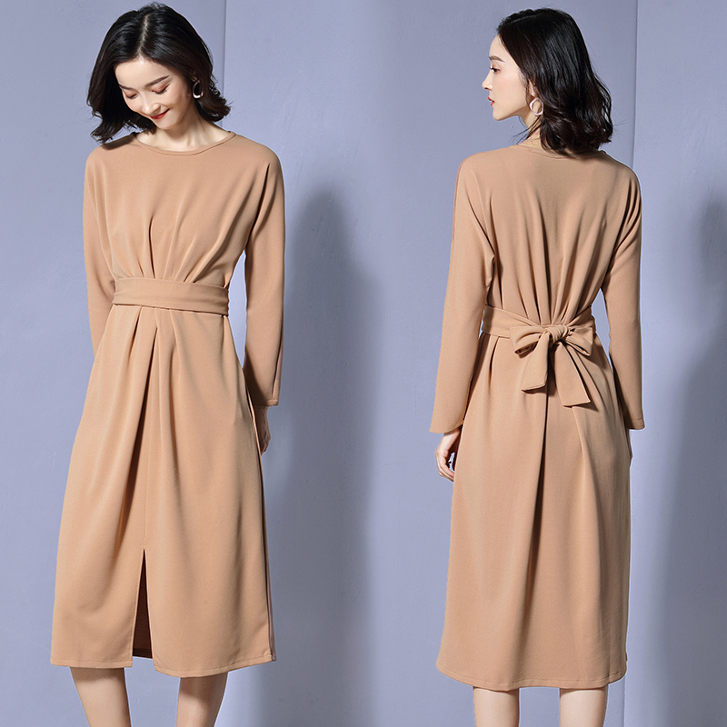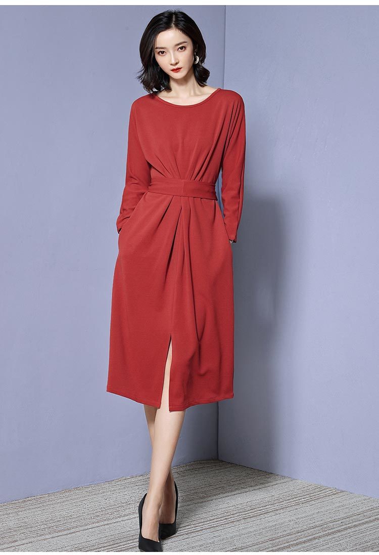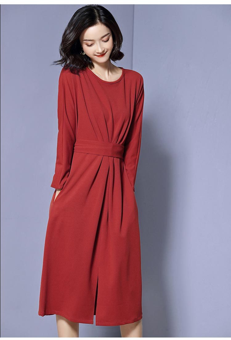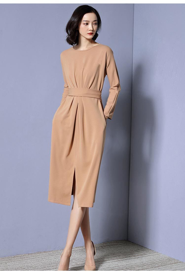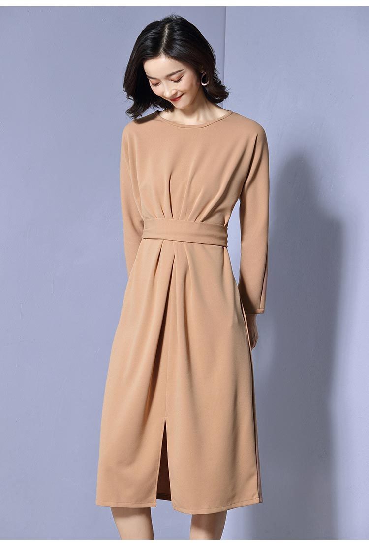 ベーシックなデザインがきちんと感がある大人の雰囲気漂う長袖ワンピースのご紹介です。