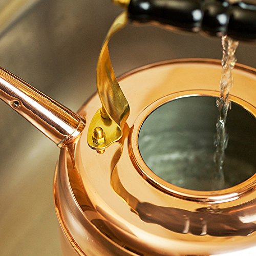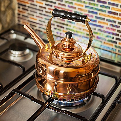 Make tea time as posh as possible with this traditional solid copper whistling Simplex Kettles Buckingham No.1 teakettle from Newey & Bloomer. The Buckingham teakettle has been the epitome of elegance since it was first crafted and remains a staple of teatime. The kettle is handcrafted in England out of pure copper, which helps to retain the water's heat for longer than your average kettle. The Buckingham features tin studs around the base for decorative effect. The ebonised beechwood handle stays cool even once your water is boiling, to help you pour with the utmost confidence. And the melodic whistle of the kettle will let you know when your water has come to a boil. This kettle is made for use on gas stove tops.1.9 quart capacity