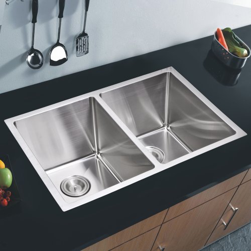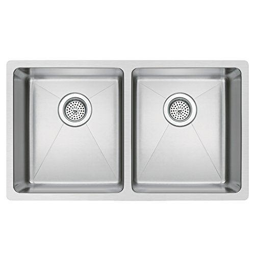 Water Creation SS-U-3118A 31-Inch by 18-Inch Under Mount 50/50 Double Bowl Stainless Steel Kitchen Sink with Coved Corners