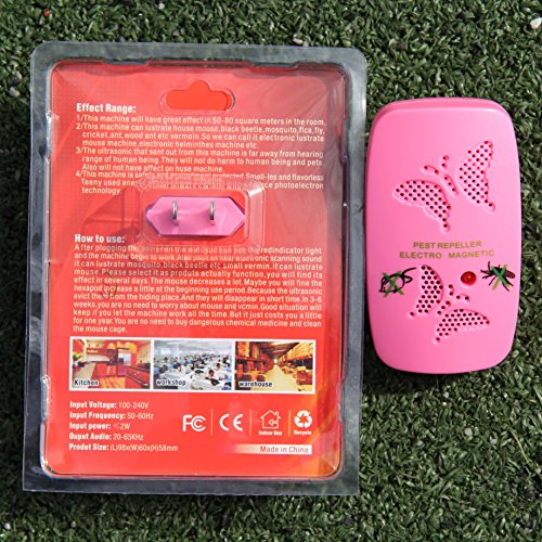 -. Brand : Sunnee -. Feature : Advanced ULTRASONIC, Electron Magnetic and Infrared Technology. Helps to repel pests , mice, etc. / CHEMEICAL-FREE and ODOR-FREE. Inaudible and harmless to human beings and pets while working. / POWER-SAVING and Made of Quality material with BUTTERFLY-SHAPED radiating holes on the top. / USER-FRIENDLY with an easy pling into the wall. Won't interference with other domestic appliances / IDEAR FOR homes, warehouses, offices, stores, hotels, etc. Effective in a room of about 50-80 sq.m. -. Label : Sunnee -. Manufacturer : Sunnee -. PackageQuantity : 1 -. ProductGroup : Lawn & Patio -. ProductTypeName : OUTDOOR_LIVING -. Publisher : Sunnee -. Studio : Sunnee -. Title : Ultrasonic Pest Repeller - Electronic Pest Control Repel Mice,cockroach,fly,mosquito,ants,spiders,bed Bugs,rodent - Indoor Home Insect Control Repellent Roaches Equipment - Pink & White