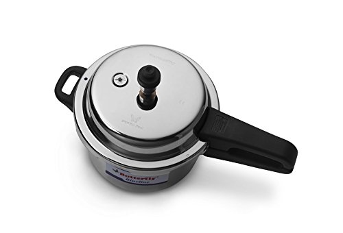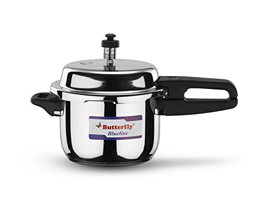 Butterfly Blue Line Stainless Steel Pressure Cooker. Stainless Steel Pressure Cooker with ATB. Body & lid made of premium quality Stainless Steel. Aluminum Thermal Base, Gasket release vent. Comes with Safety Valve and Ergonomically designed handles.Feature