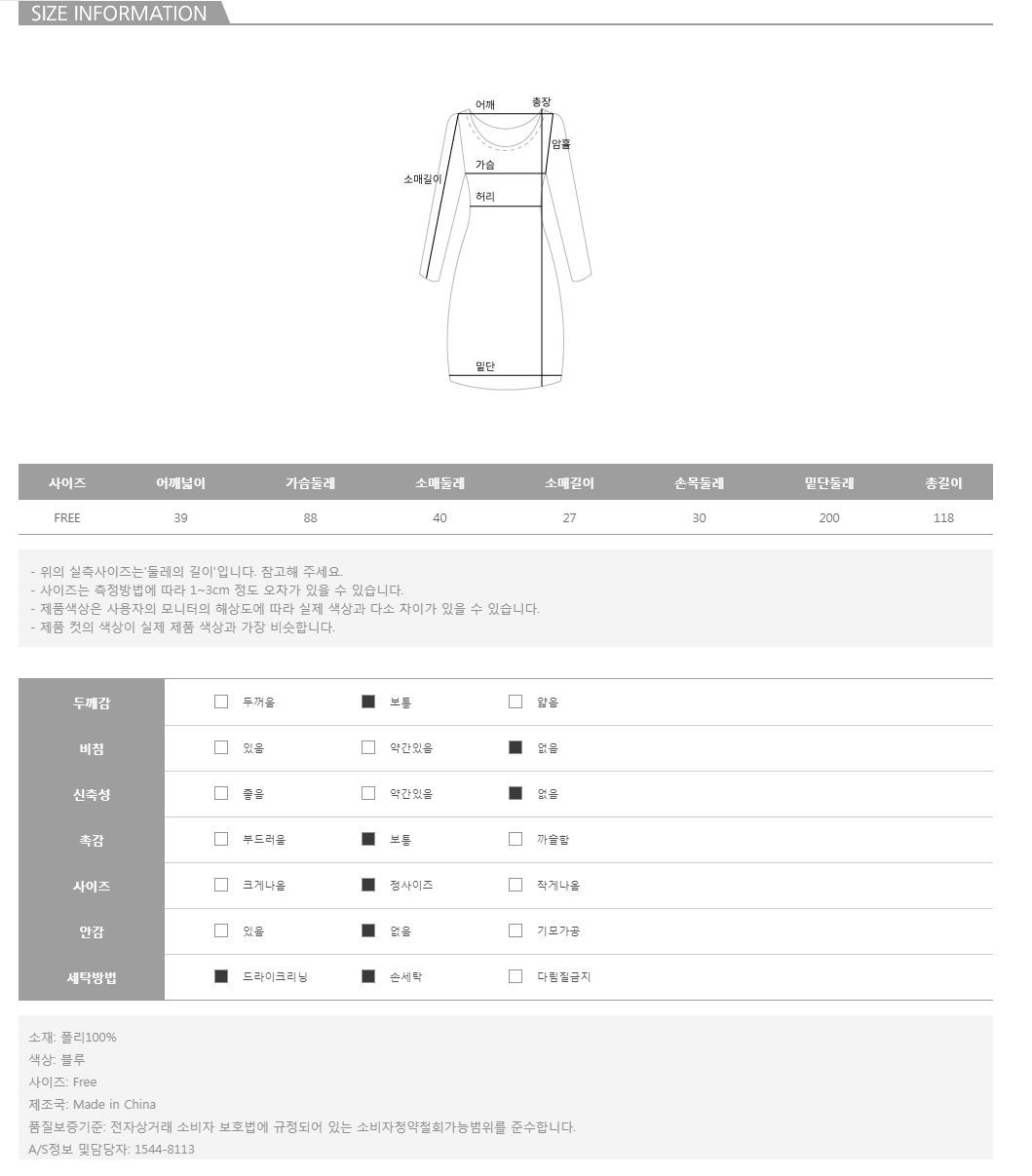 시원한 느낌이 물씬 느껴지는 블루 컬러의 도트 카라 롱 원피스예요.