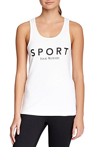 -. Feature : Lightweight breathable comfortable cotton fabric / Scoop neck sleeveless tee with Isaac Mizrahi Logo Graphic / Perfect for daywear, sleeping, out of the Gym, or after working out / Model's stats for sizing: Bust: 34", Waist: 25" Model is wearing size Medium / Care Instructions: Machine wash cold, Tumble dry low