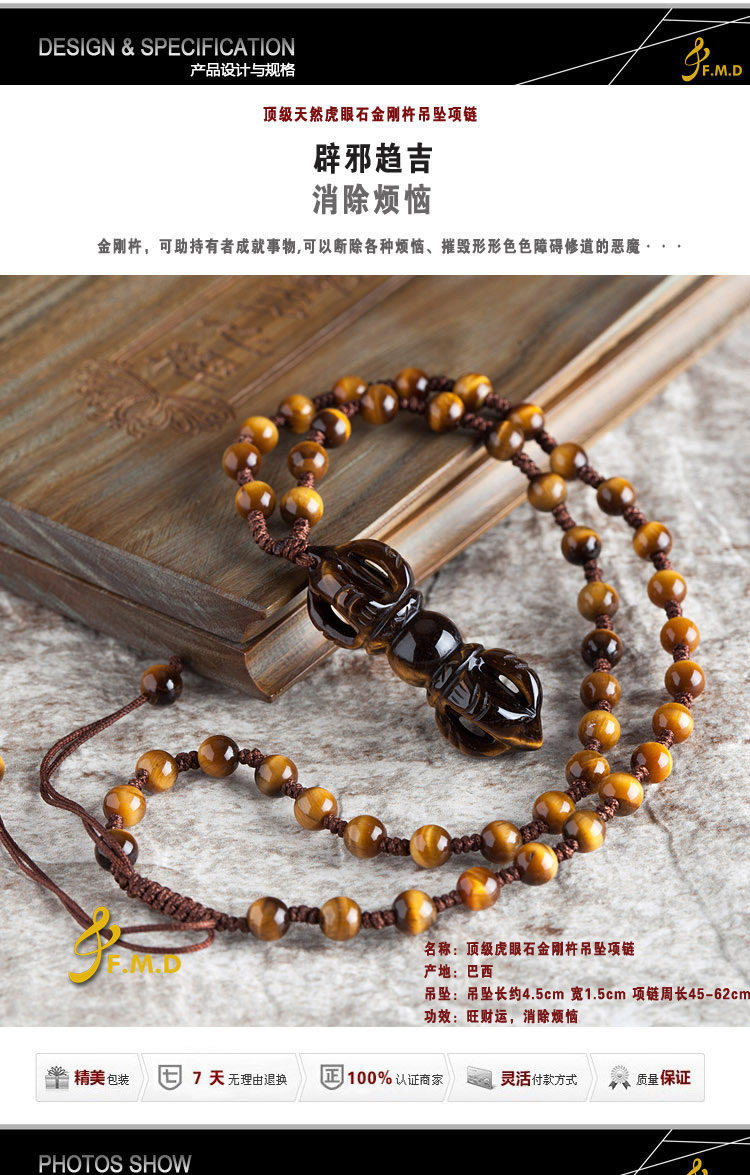 Tiger Eyes Necklace for men天然虎眼石吊坠项链/男/金刚杵/降魔杵男士吊坠 旺财辟邪