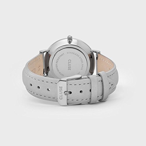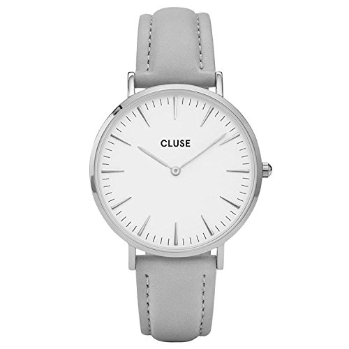 Cluse Women's La Boheme 38mm Grey Leather Band Metal Case Quartz White Dial Analog Watch CL18215