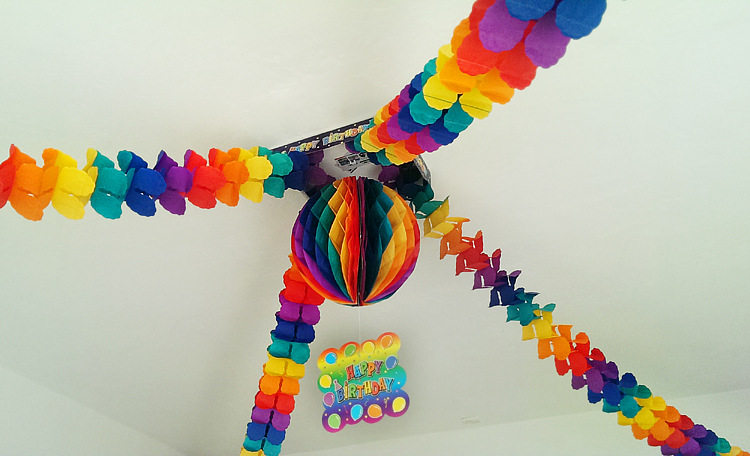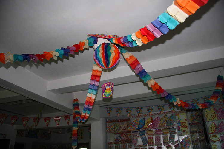 A ball garland large ball (ball diameter of about 32CM); four colored garland (3.2 meters long each treaty)