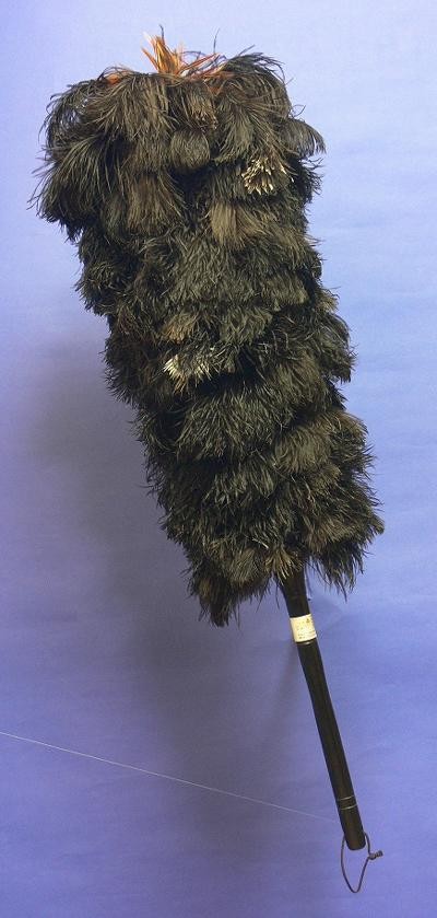 | 南アフリカのダチョウ牧場で飼育されたオーストリッチの、1羽から十数本しか採取できない翼の内側のフロスフェザー(ファーストクラス羽毛100%)で製造しております(先端と柄の付け根部分は鶏毛です)。オーストリッチは、美しいだけでなくホコリを取る実用面でも非常に優れています。 |