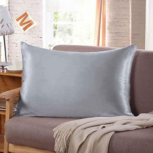 100% Pure Mulberry Luxury Silk Pillowcase,Good for Skin and Hair,Standard,Silver Grey,1pc