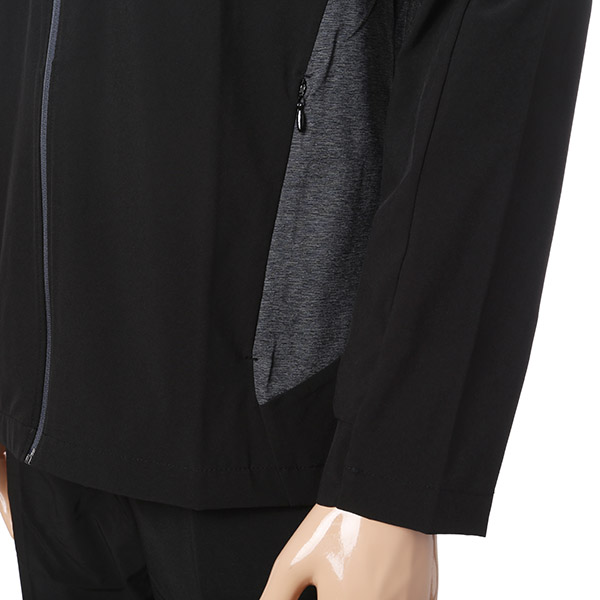 스트레치 소재를 믹스하여 활동성이 좋은 우븐 트레이닝 자켓