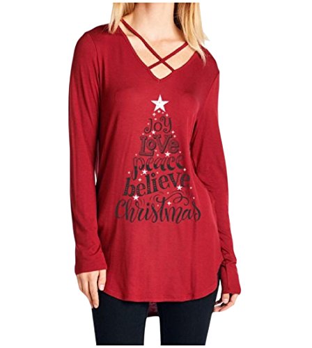 -. Title : Tootess Womens All-Match P.R.Inted Christmas Wild Tops T Shirts Blouse