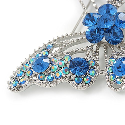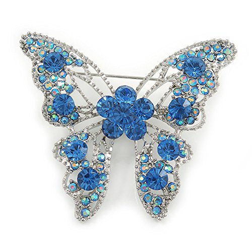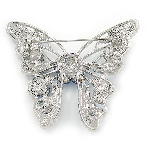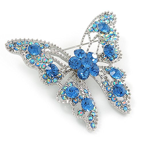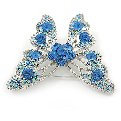 -. Title : Dazzling Sky Blue Austrian Crystal Butterfly Brooch In Rhodium Plating - 60mm W