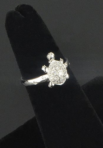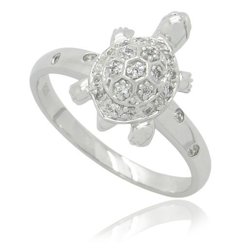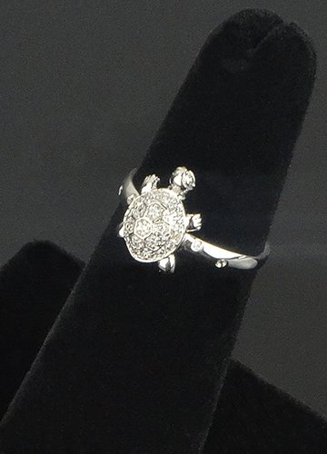 -. Title : Sterling Silver Rhodium Plated Round Cut Cubic Zirconia Animal Turtle Tortoise Statement Ring