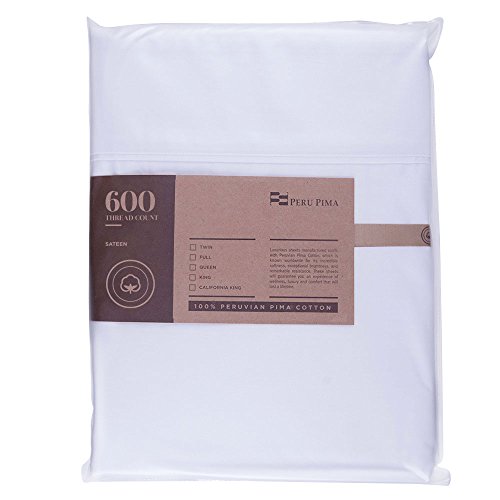 Peru Pima - 600 Thread Count - 100% Peruvian Pima Cotton - Sateen - Bed Sheet Set - King, White