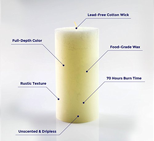 Studio : Melt Candle Company Publisher : Melt Candle Company Binding : Kitchen Product Description Set of 3 Ivory Unscented Pillar Candles! Lighten your home or special event with these attractive unscented pillar candles hand poured by Melt Candle Company. These pillar shape candles are crafted with high quality white wax and cotton wick. The combination of these two elements will ultimately result in a clean and smokeless burn. The wax used in this pillar candle is of the highest caliber and is made the Europe. It is guaranteed not to drip or melt away fast. The average burn time for this pillar candle is 70h which outperforms most other common candles. The extended burn time allows you to re-use this candle for multiple events thus adding value to your product. Our candles are not pressed and dipped into color but have colour all the way through. Place it on a table or in a lantern to create an attractive addition to any occasion including, wedding reception, garden, spa, bedroom, etc. Melt Candle Company brings the highest quality candles and candle holders to the floral and event industry. Each candle is crafted to perfection thus creating a sleek, flawless accent.
