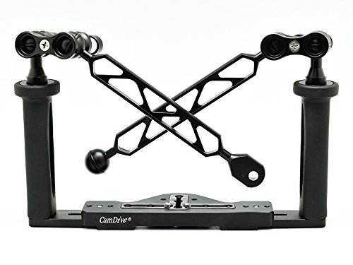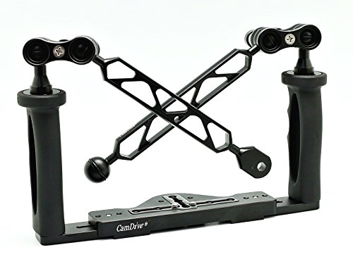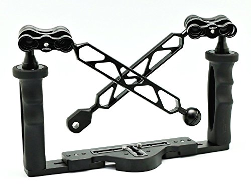 Aluminium Tray/Grip for Underwater Camera Housings with two Screw Holes for Attaching at the Bottom. For any Housing that has one Threaded Hole or two Threaded Holes at the Bottom of the Housing.