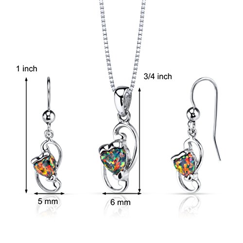 -. Title : Created Black Opal Heart Pendant Earrings Necklace Sterling Silver 2.00 Carats