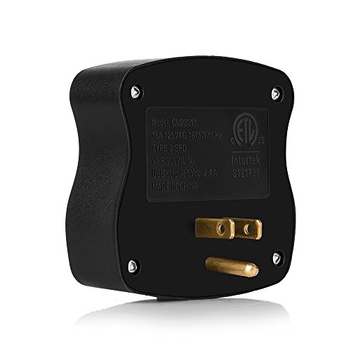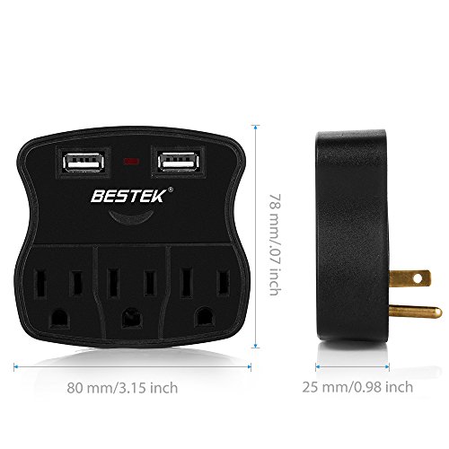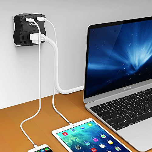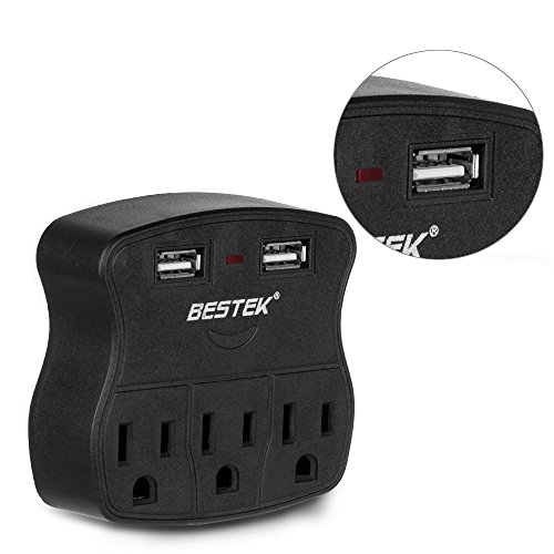 BESTEK 3-Outlet Wall Mount Surge Protector with 2 USB Ports ? A convenient accessory for any home, office, professional workstation, or entertainment center, this surge protector lets you safely power and charge up to 3 x AC and 2 x USB without worrying of electrical damage. Wall-Mountable Design with 3 AC Outlets ? Wall-mountable design makes it easy to install, keep floor space clear of clutter, and no more cable chaos. ? 3 AC outlets allow you to power up to 3 electrical devices, perfect for desktop computers, peripherals, kitchen appliances, standard household electronics. Dual USB Ports Charge Mobile Phones ? Dual Smart USB charging ports auto-detect your devices to maximize the fastest possible charge speed up to 2.4A total. ? Make it easy to keep your devices running without blocking your computer's USB ports or the AC outlets you need for larger devices. Specification Joules Rating: 245 Line Voltage: 125V AC USB Amps: 2.4 Amp