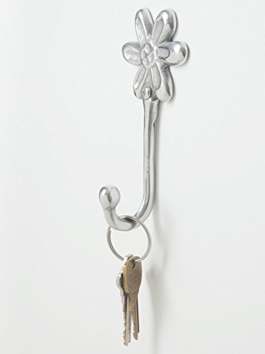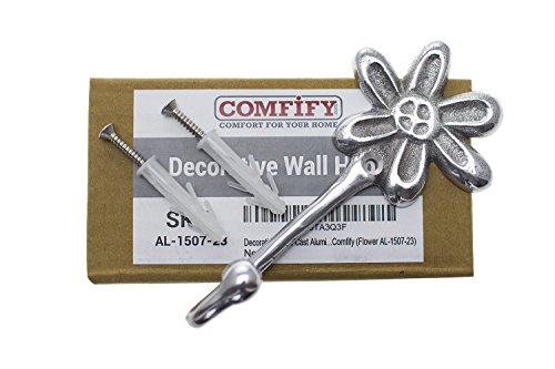 Decorative Hand Cast Aluminum Flower Single Wall Hook | Wall Mounted Hanger | For Clothes, Hats, Keys and More | Polished Finish | With Screws and Anchors - by Comfify