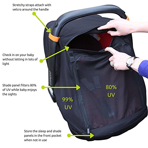 SnoozeShade Universal Car Seat Canopy, blocks 99% UV with 360-degree protection