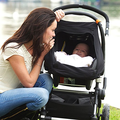 Protect your little one from bright lights, biting bugs, nasty germs, cats and wind/chill and light rain easily with SnoozeShade.
