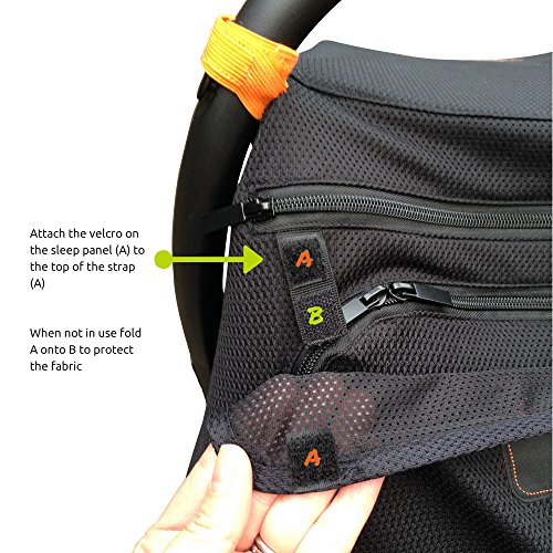 Quick and easy access to baby with a fully opening zippable front panel. Baby can see out safely shaded from the sun. Pull up the snooze panel when it’s naptime and you can still check in using our unique sneak-a-peek zip