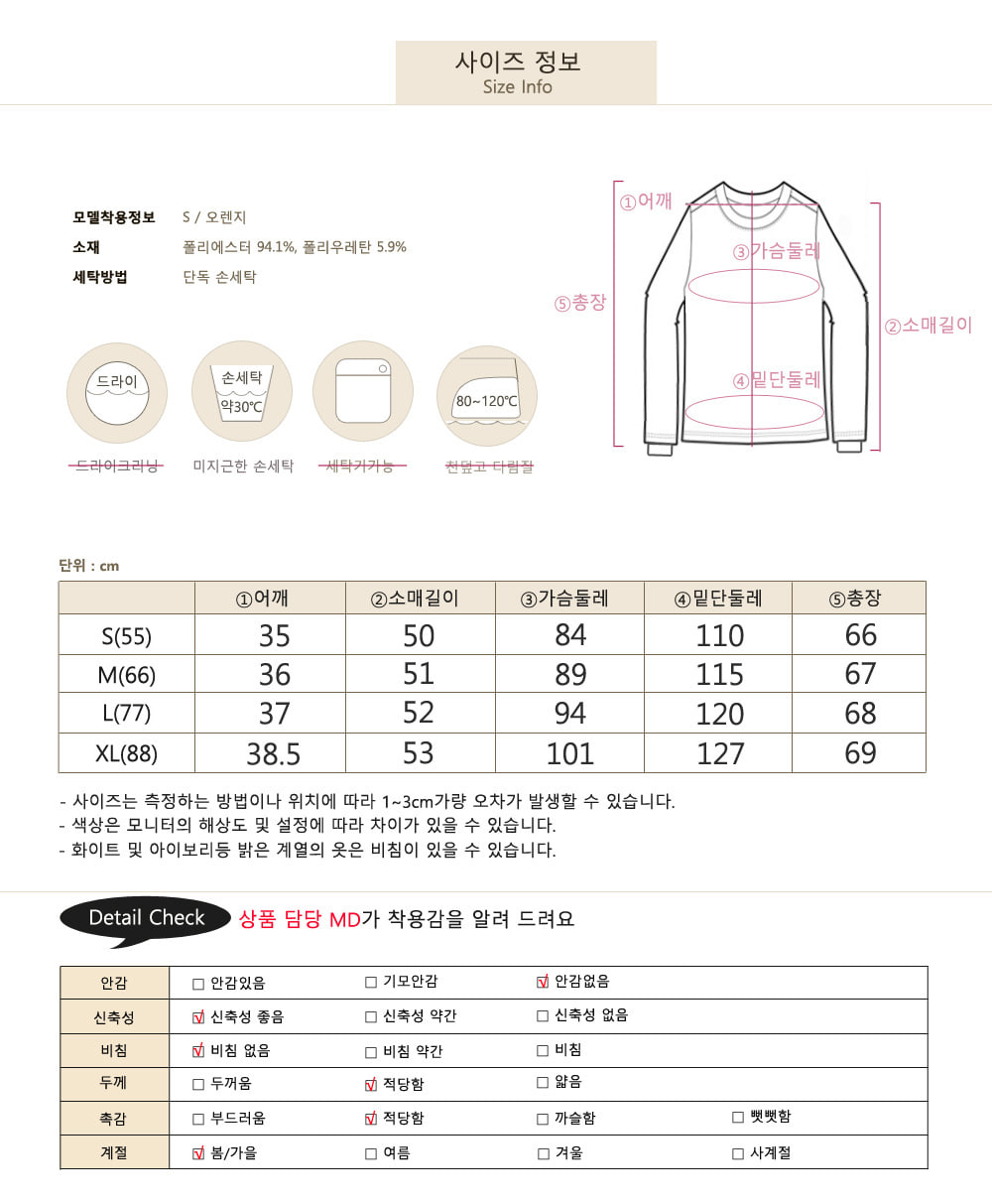 S(55) / M(66) / L(77) / XL(88) 총네가지 사이즈로