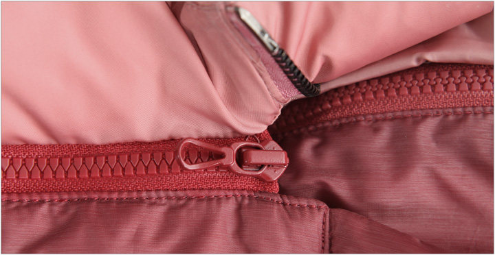 门襟细节:拉链和按扣双层门襟设计,避免了齿道漏风的现象