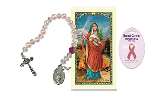 -. Title : The Crystal Chaplet of Saint Agatha Patron Saint of Those Afflicted with Breast Cancer Crystal Beads Includes a Free Breast Cancer Awareness Bracelet or a Tac Pin and a Prayer Card Blessed By HIS Holiness
