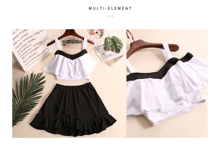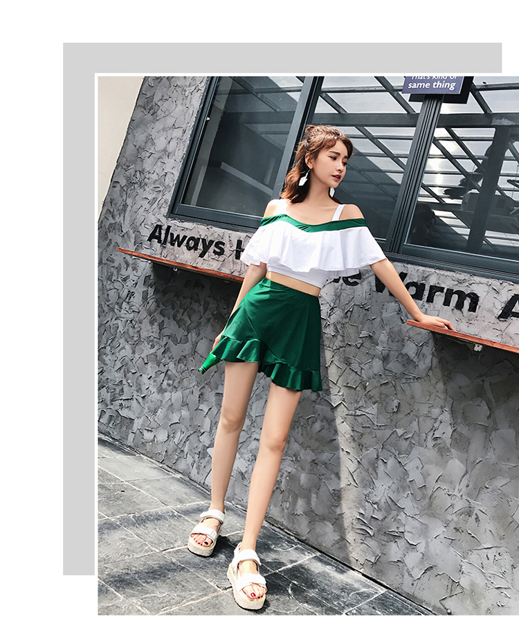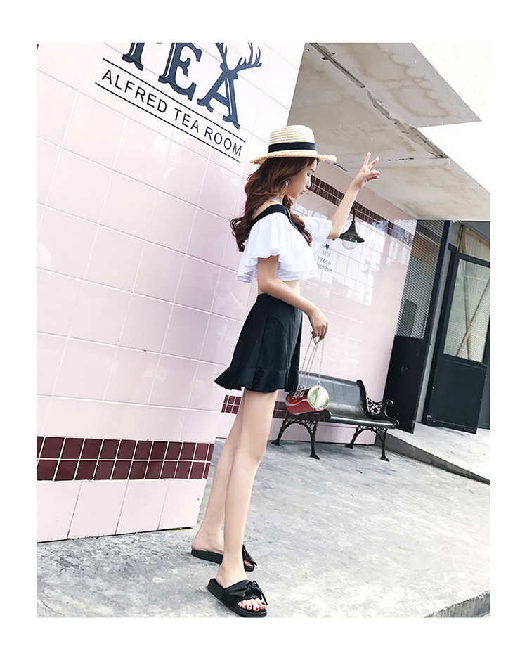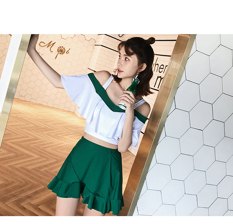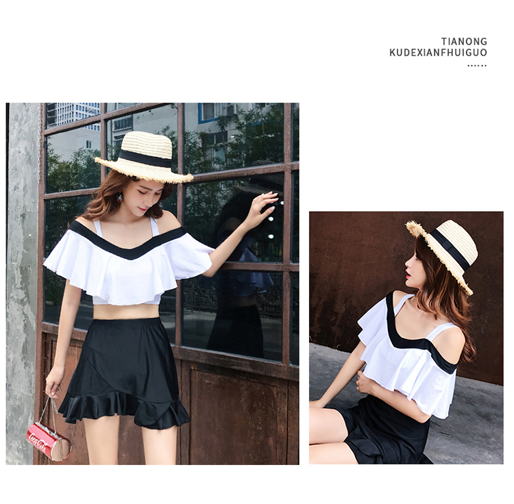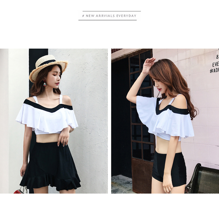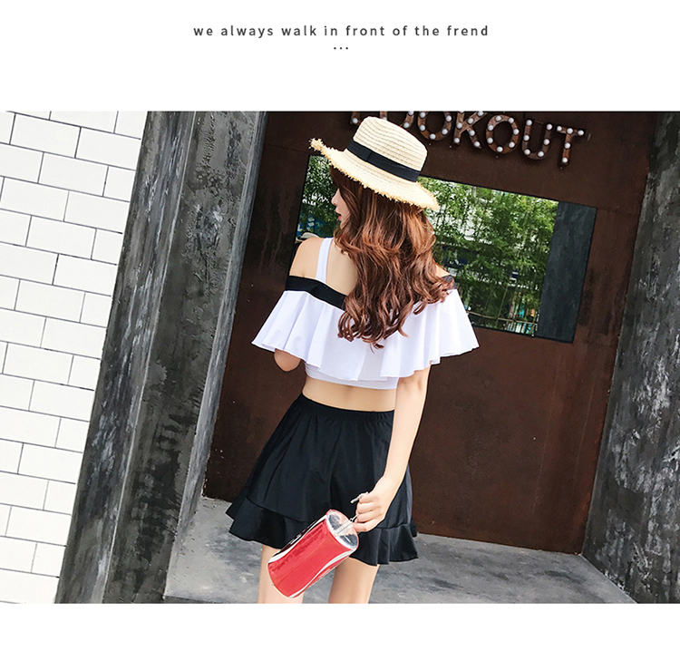 大きめフリルがかわいいバイカラーオフショルダービキニです。