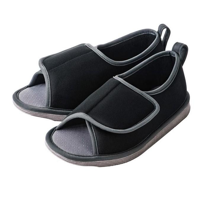 わずかな段差や滑りやすい床での転倒を予防する室内専用シューズです。履きやすく履かせやすい面ファスナー式。中敷の滑り止め加工により足のズレを予防します。底面には3か所の滑り止めがあります。 |