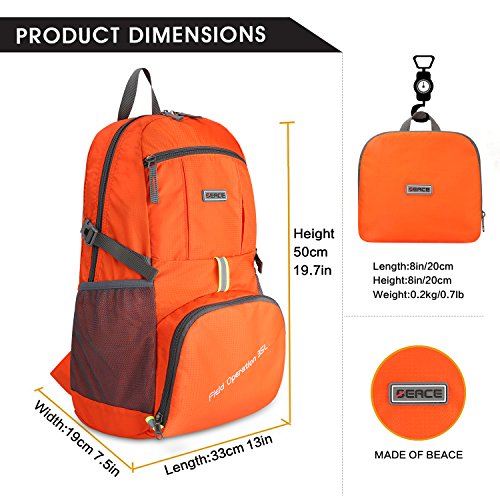 Studio : Beace Publisher : Beace Binding : Misc. Product Description Do you want to have a big and lightweight and portable outdoor backpack? BEACE 35L(only 0.7Ibs)foldable lightweight outdoor hiking travel camping backpack with stylish look is ideal for everyday use or occasional trips. This sports Backpack to let you hold iPhone7,iPhone7 Plus, iPad mini, iPad, Powerbank, hammock, Keys, Notebook and Bank cards at the Same Time. When you do not need to use it, you just need to carry a small bag(because the folable backpack can be packable). Perfect belonging for daily activities, like sport activities and leisure activites both in the downtown and suburb .It also can be a gift for your family or friends.