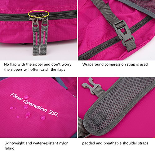 Water-resistant Nylon Fabric -Made from highly water-resistant and tear-resistant nylon fabric. Packable and Foldable -Folds into zipped inner pocket to fit anywhere. It save space and avoid excess baggage fees. Breathable and Padded Shoulder Strap -Padded and breathable mesh shoulder straps help your shoulder to relieve stress. Adjustable Satchel Shoulder Strap -Flexible satchel shoulder strap can be adjust loose or tight. Perfect fit for your body. Product Specifications: SIZE: 35L [19.7(H)*13(L)*7.5 (W)Inch] WEIGHT: 0.7 Ibs/0.33Kg COLOR: Black, Dark green, Hot Pink, Orange Our Guarantee: To offering superior quality products, best customer service for each client is our mission -If you are not delighted with our product, please let us know by sending message or e-mail. We will help you and reply to you within 24 hours. -We offer a 100% Satisfaction Guarantee! If nor, you can contact us or send it back by our way for a replacement even a full refund anytime! You have no risk! "Add it to cart"Now! Package: - 1 x Foldable bag 0