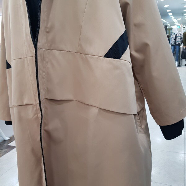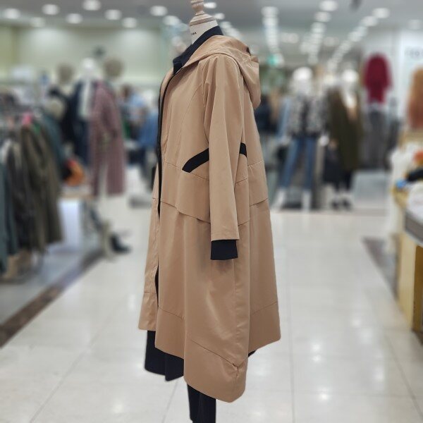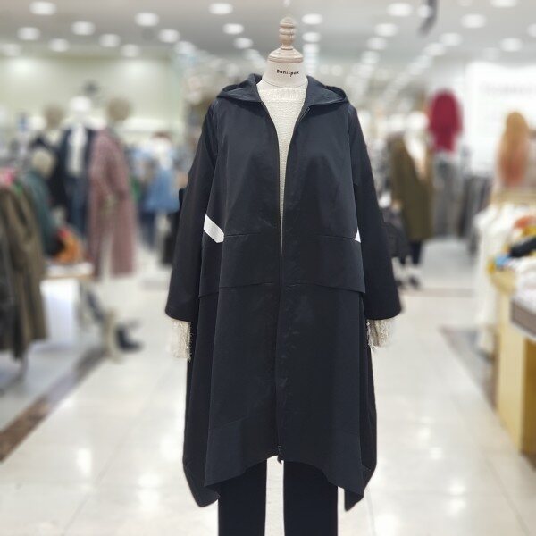 멋스럽고 우아한 후드 집업코트 소개합니다.에이라인의 적당한폭으로 떨어지는 코트이며 허리선 날개 있어 밋밋하지않고 뒷중심선에 블랙라인으로 전체적으로 우아해보이게하는 코트예요 간절기용으로 더할나위없이 좋아요~~