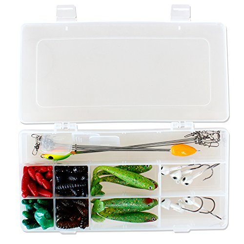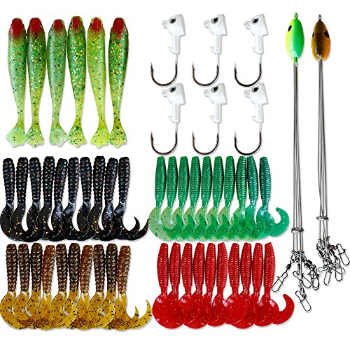 -. Feature : 2 kinds of fishing sets:35Pcs/63Pcs / Lifelike designs imitate the swimming action of small fish, helps to attract a larger catch / Jig head with curly tail lures combo suitable for any type of catch.They can be used in both freshwater and saltwater.Work well in any water layer.Wonderful tools for fishing lovers / Universal jig for flipping, pitching and casting in and around cover / Suitable for different kinds of fish,ideal for bass,trout, salmon, tilapia,walleye, carp, largemouth, pike etc.
