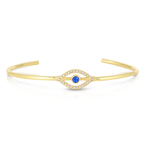 -. Title : Stylish Sterling Silver Evil Eye Gold Finish Cubic Zirconia Cuff Bracelet