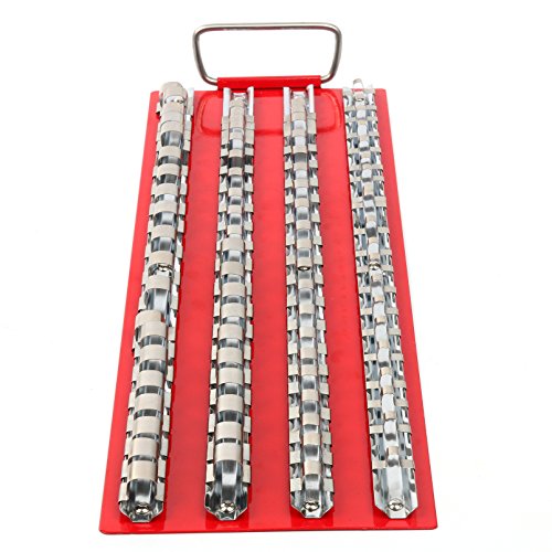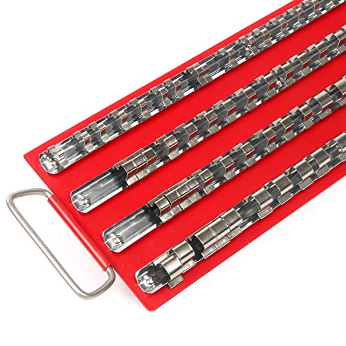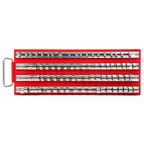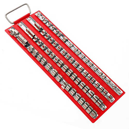 This 80pc Metal Socket Rack Tray Holder Rails fit neatly into a tool chest or mounted onto a pegboard, this socket holder keeps your sockets organized for quick and easy use and selection. With an 80 piece capacity these Socket Rack Tray Holder Rails will accommodate all your sockets