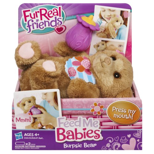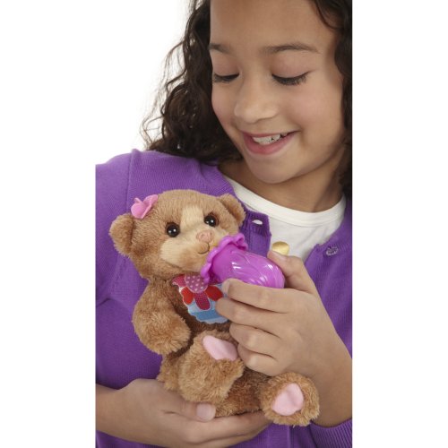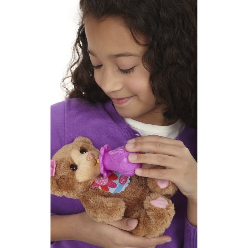 There’s nothing cuter than a baby animal, and this Sippy Pup pet needs you to cuddle and take care of her! She’s always hungry, and she loves it when you "feed" her! When you press her bottle or your finger to her mouth, she’ll kick her feet and bark. You’ll have so much fun taking care of your sweet little pup, and she’ll always stay puppy-cute! FurReal Friends and all related characters are trademarks of Hasbro.Feature