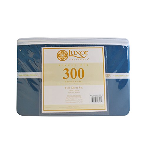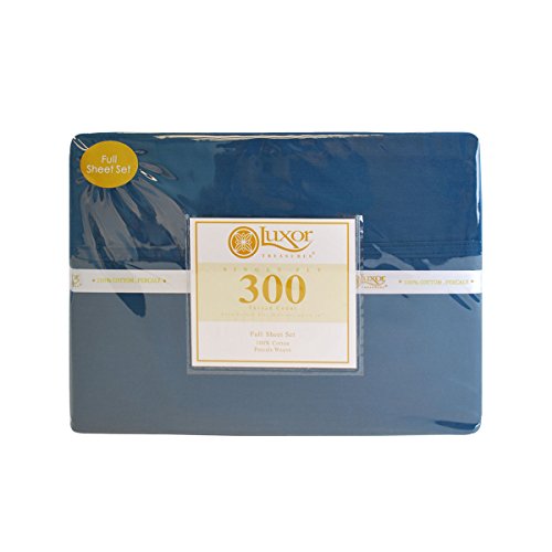 Percale 300 Thread Count 100% Cotton, Deep Pocket, 4-Piece Queen Bed Sheet Set, Solid, Navy Blue
