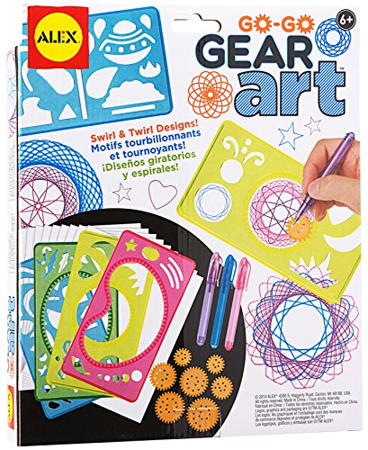 ALEX Toys Artist Studio Go Go Gear Art puts a new spin on the classic gear drawing sets. Templates come with new designs you can use to enhance your spiral creation. Spaceships, stars, hearts and more can now be incorporated into your artwork. The kit includes 4 templates, 7 gears, 3 mini pens, 10 paper sheets and easy instructions. Recommended for children 6 years of age and older.Feature