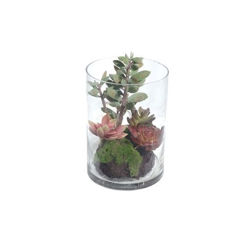 Gold Eagle USA Artificial Mix Succulent Plant with Soil in Terrarium Vase, 10"